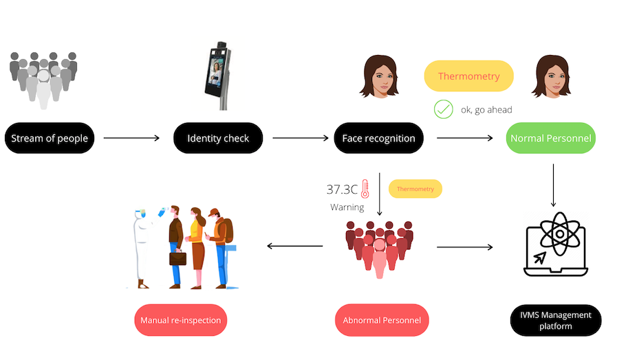 – Information binding: face captured picture + temperature information in real-time recording